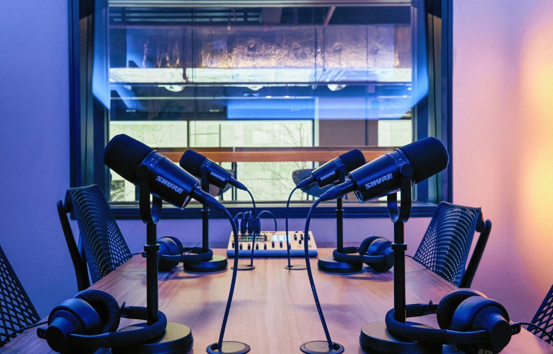 A plug-and-play podcast studio with video functionality, designed to make recording as easy as possible - Maximise your recording experience with minimal hassle at our Podcast Studio 23 in Canary Wharf. This studio is perfect for up to 4 people, offering everything you need to produce high-quality content. We’re excited to offer a 2-camera setup in 1080p, powered by Ecamm Live, for easy and professional podcast recording. Equipment Included - Zoom Podtrak P8 4x Shure MV7 Podcast Mics 4x AiAi TMA-2 Studio XE What To Bring - For video recording: A hard drive or SSD to take your footage home (recommended: 32GB per hour). For audio-only: An SD card or laptop.